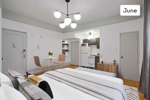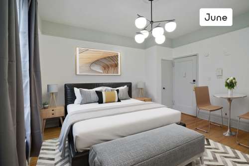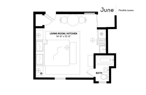 This studio is available on a 12 month lease or a flexible short term (31 to 364 days) lease. You pick your custom start and end date. Monthly rent rate is determined by furnishing preference, move-in date and move-out date. Speak to a June representative for recommendations on the best stay duration for the lowest rate.