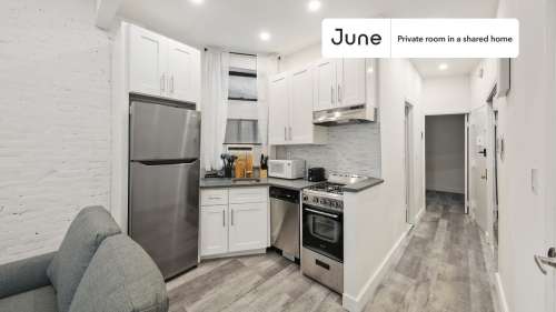This Full room in East Village is available on a 12 month lease or a flexible short term (31 to 364 days) lease. You pick your custom start and end date. Monthly rent rate is determined by furnishing preference, move-in date and move-out date. Speak to a June representative for recommendations on the best stay duration for the lowest rate.